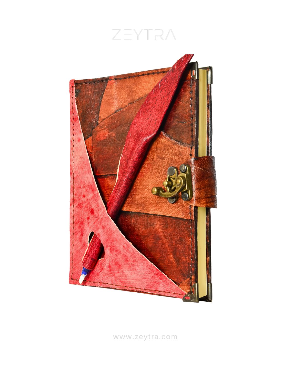 Kırmızı Kalem Detaylı El Yapımı Orta Boy Deri Defter
