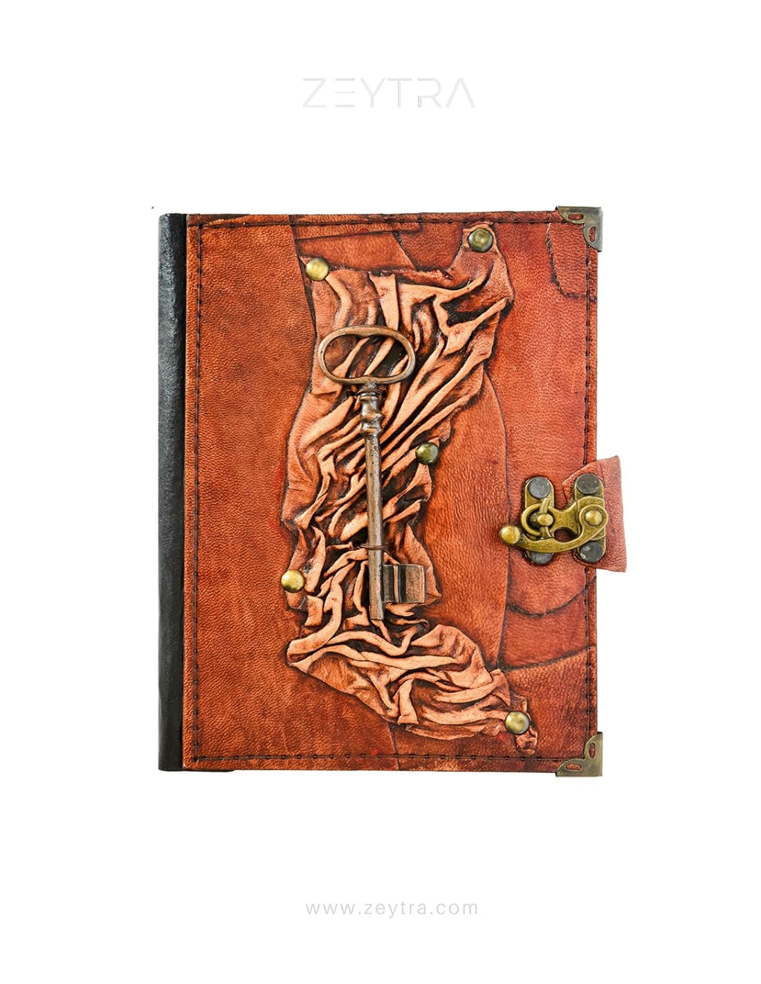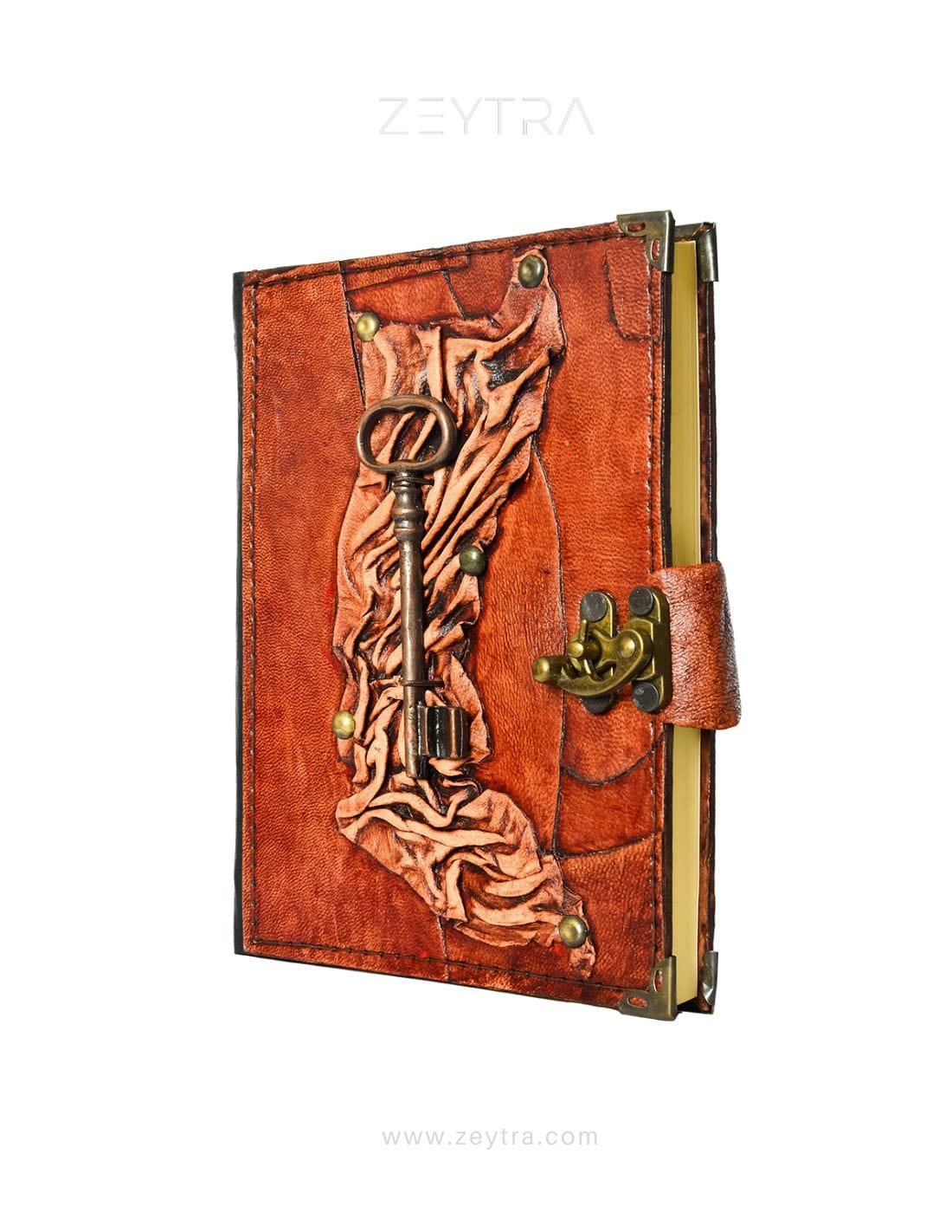 Metal Anahtar Detaylı El Yapımı Orta Boy Deri Defter