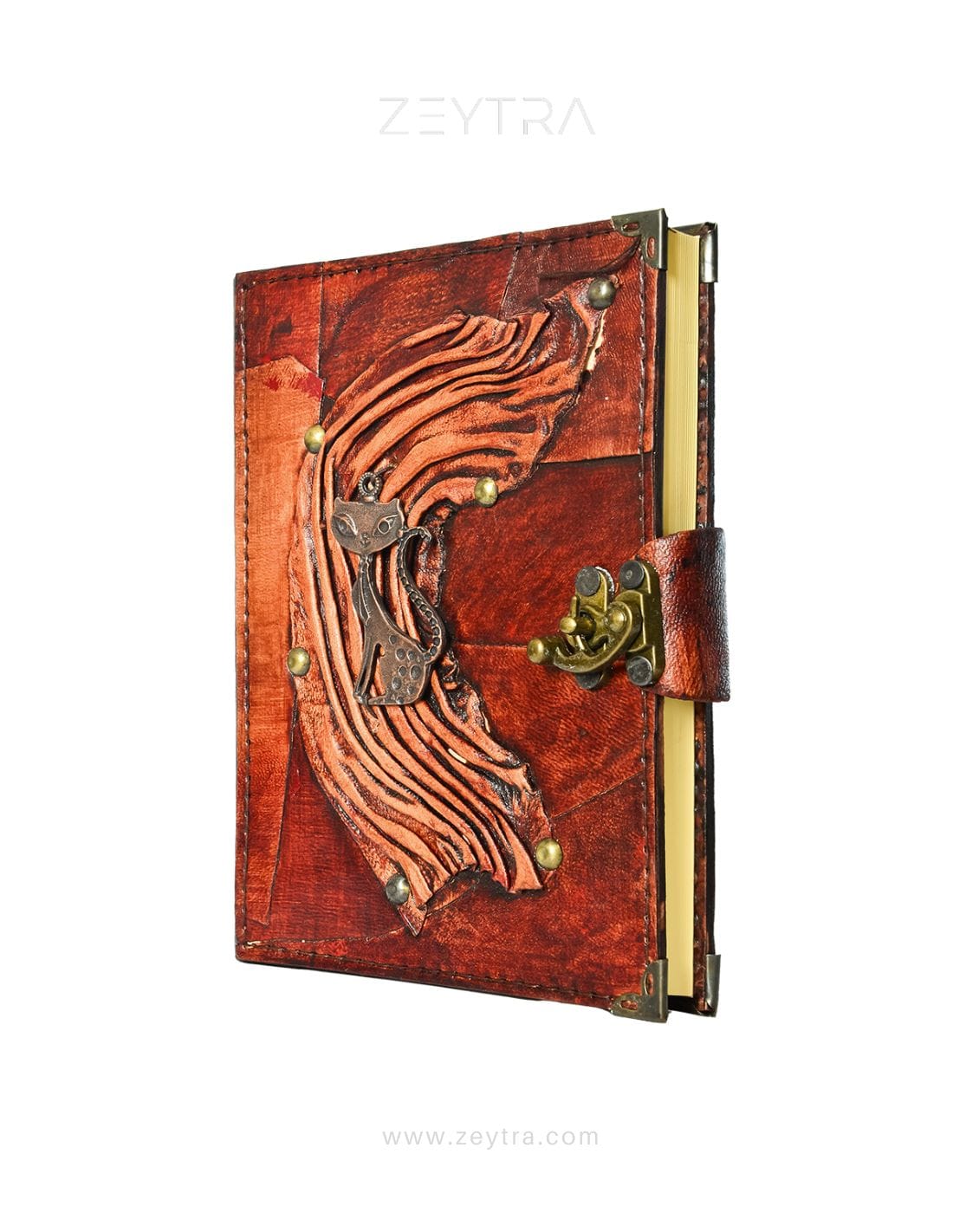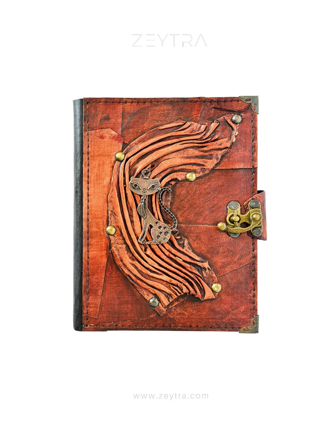 Metal Kedi El Yapımı Orta Boy Deri Defter